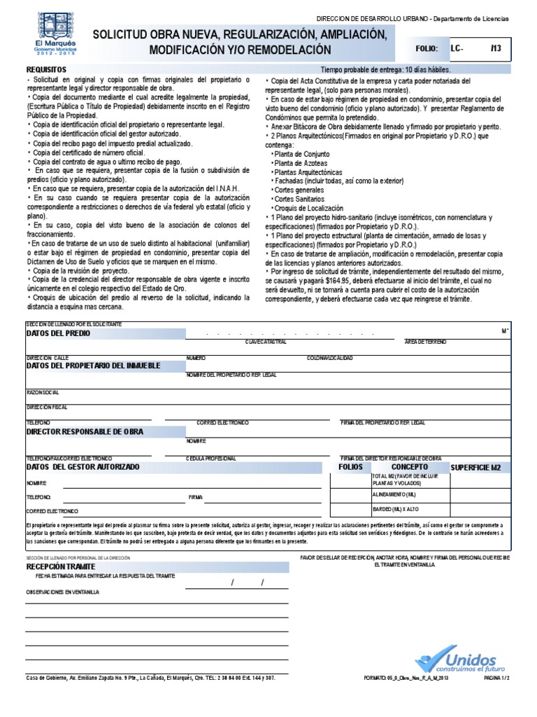 Solicitud de Licencia de construcción Condominio Propiedad